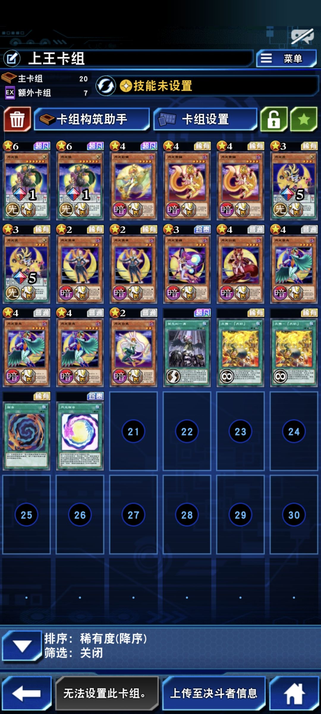 月光卡组需要氪金包里面的彩雏,三张才强,配合月光虎,一卡生万物,其次额外的宋虎和武神 加具土是必须的,都是解场+展开的手段。没有菜雏的还是玩老月光卡组吧。