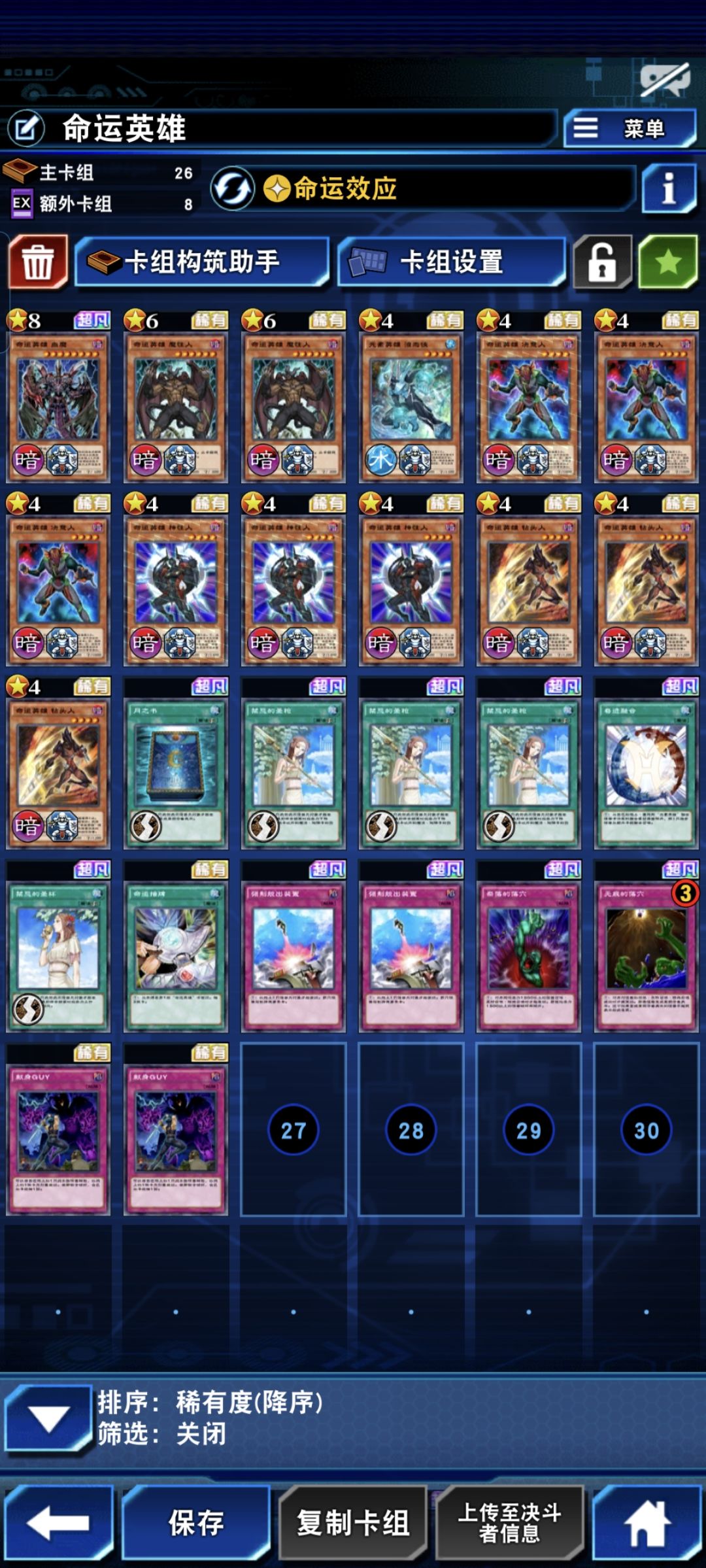 命运英雄,有了敌托邦,配合技能,可以二速炸卡,配合强力红坑打资源。额外可带日升和泛用连接怪。