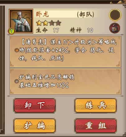 品质 代表了部队的质量,可通过扩编来进行提升;会影响部队每提升一级所带来的部队属性的提升;同时更高的品质会提高等级上限、解锁新部队词条