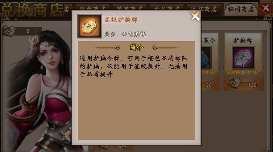 新增秘闻商店,可通过秘闻商店获取,普通征募令等进阶升级道具