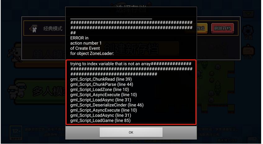 游戏报错截图:游戏在出现重大问题时通常会出现一个如下图所示的截图,这个截图可以帮助我们更精准的定位问题产生的原因,如果遇到,请务必能够保留提供给我们!请确保截图能够完整展示红框所选的完整内容,感谢大家!