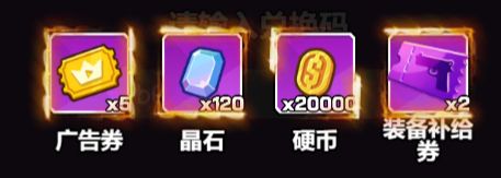 【奖励内容】:晶石*120、硬币*20000、装备补给券*2、广告券*5