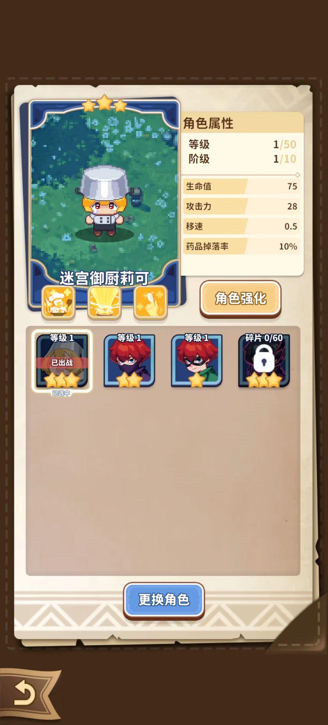 1、首个女性角色-迷宫御厨莉可上线。可爱厨娘,据说拥有强大的恢复能力,再也不怕过关的时候被怪物打倒了。