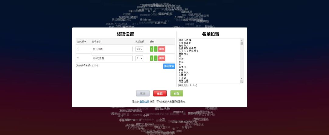 抽20位主公送出20元话费