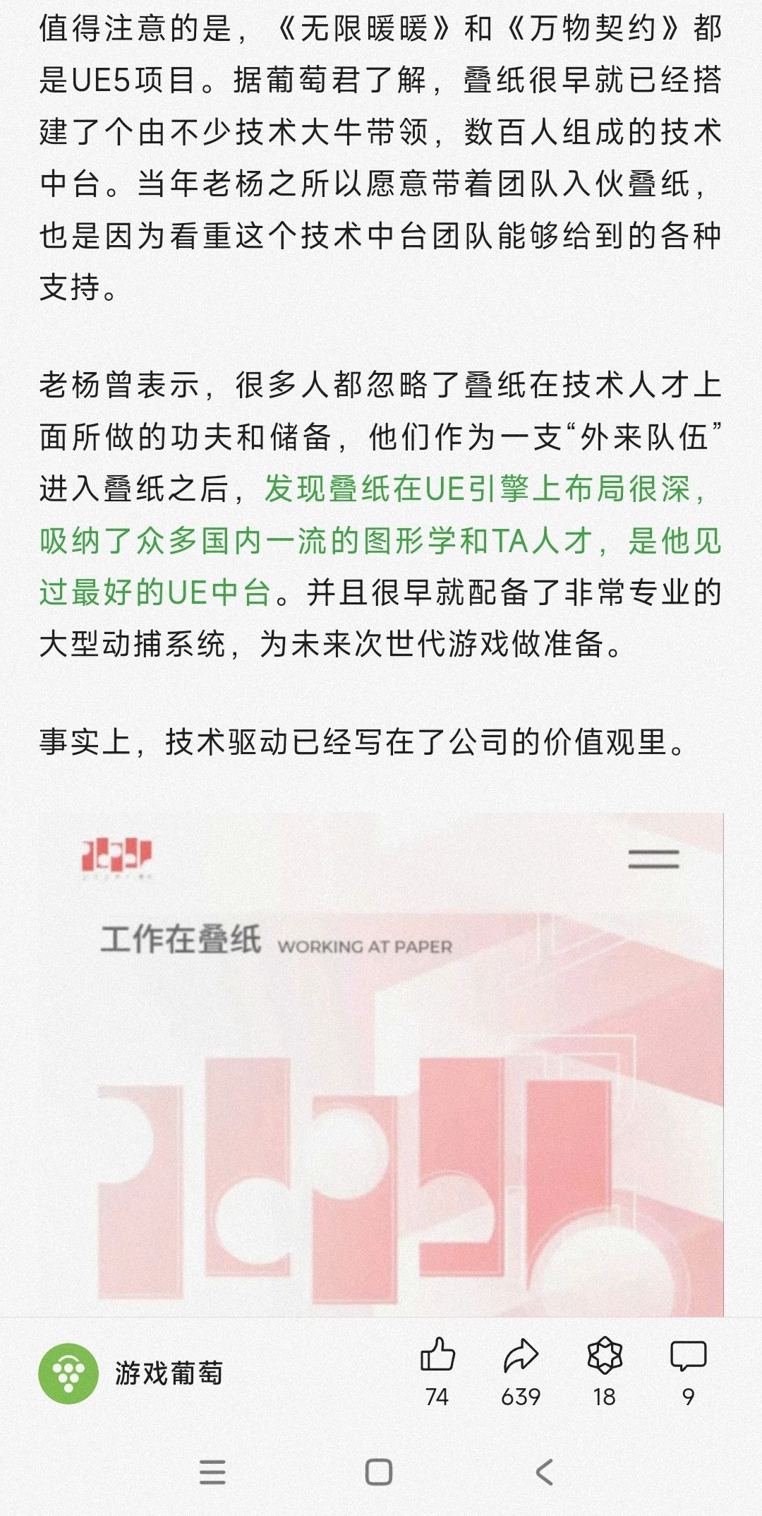上海四小龙,叠纸其实是被认定的四小龙当中被认为过得最差的那一个,但我自己的了解其实比较清楚叠一直在做技术上的打磨。