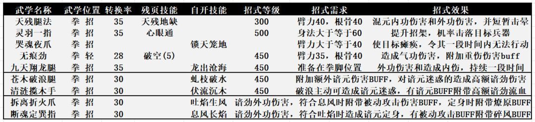 注:拳脚那篇就不推荐没上手的去看,看两遍有点头晕,本身不是写给萌新看的,修炼篇不讲修炼,老婆饼也没有老婆。不开玩笑了,拳脚那篇偏向后期刷技巧方面的通篇记录,建议是只看特性表格。