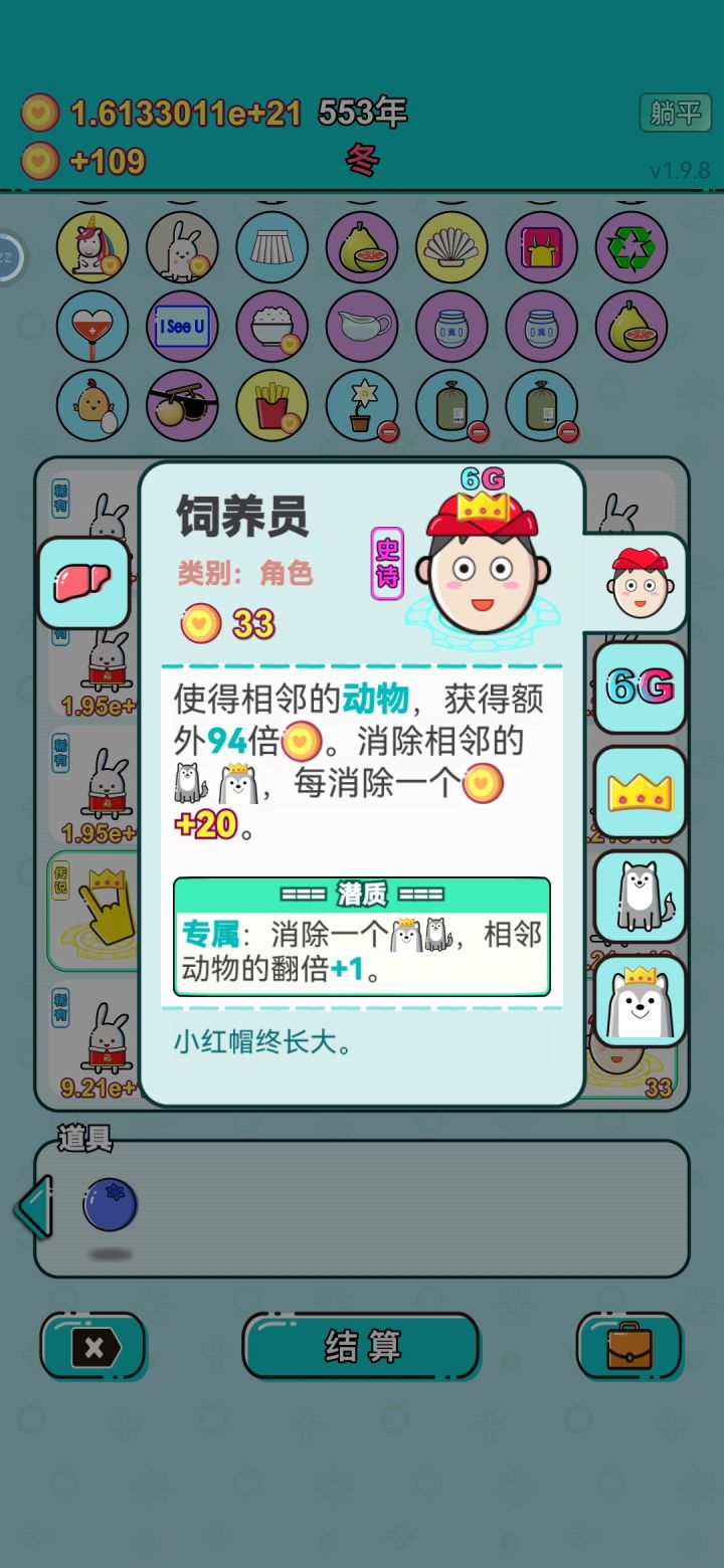 还有种方法不知道谁愿不愿意去尝试,6g郭姨+羊+水果策略,6g郭姨炸羊无法消除,一种潜质最高扔99个锅,一只羊每回合最高可以贡献30几个杨桃,拿杨桃喂龙眼,生小龙眼喂史诗水果,再被龙眼吃回去。