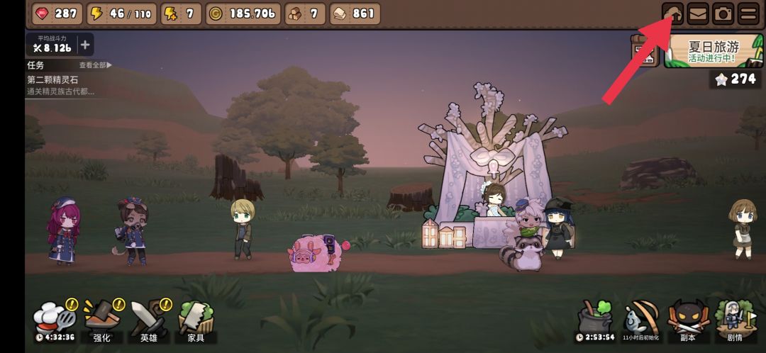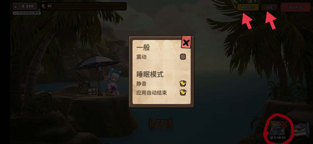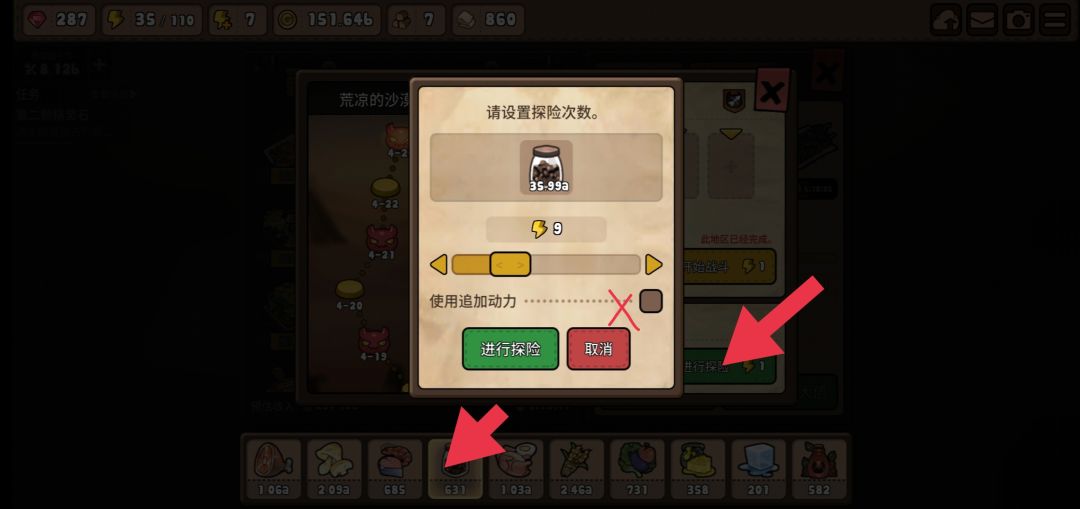 睡觉前若体力未清空可点击下方食物素材进行扫荡