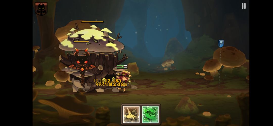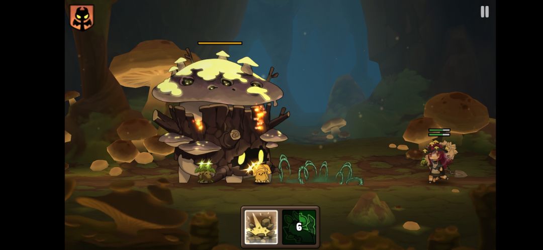 注:打蘑菇BOSS时直接放藤蔓会被炸到,在它出现红框⚠️时向后拉,点藤蔓进入慢动作时间,在蘑菇BOSS往前走一步后再放藤蔓就不会被炸到了