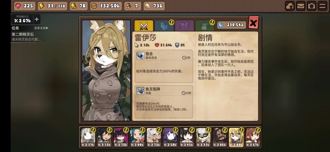 部分关卡打不过可使用,爱兰+摩卡+雷伊莎的组合先用摩卡技能聚怪,在嘲讽结束时用蕾伊莎的渔网拉到四个角色脸上,接秒按无敌触发多段反伤即可秒怪