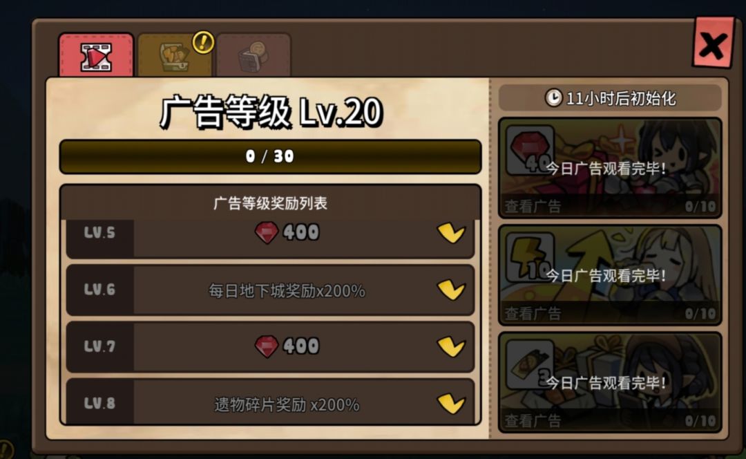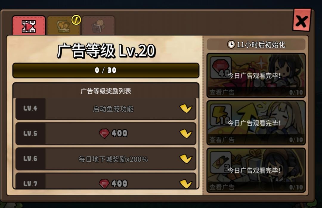 广告:由于食堂国服没有版号,不能上架氪金系统,只能通过广告获取收入