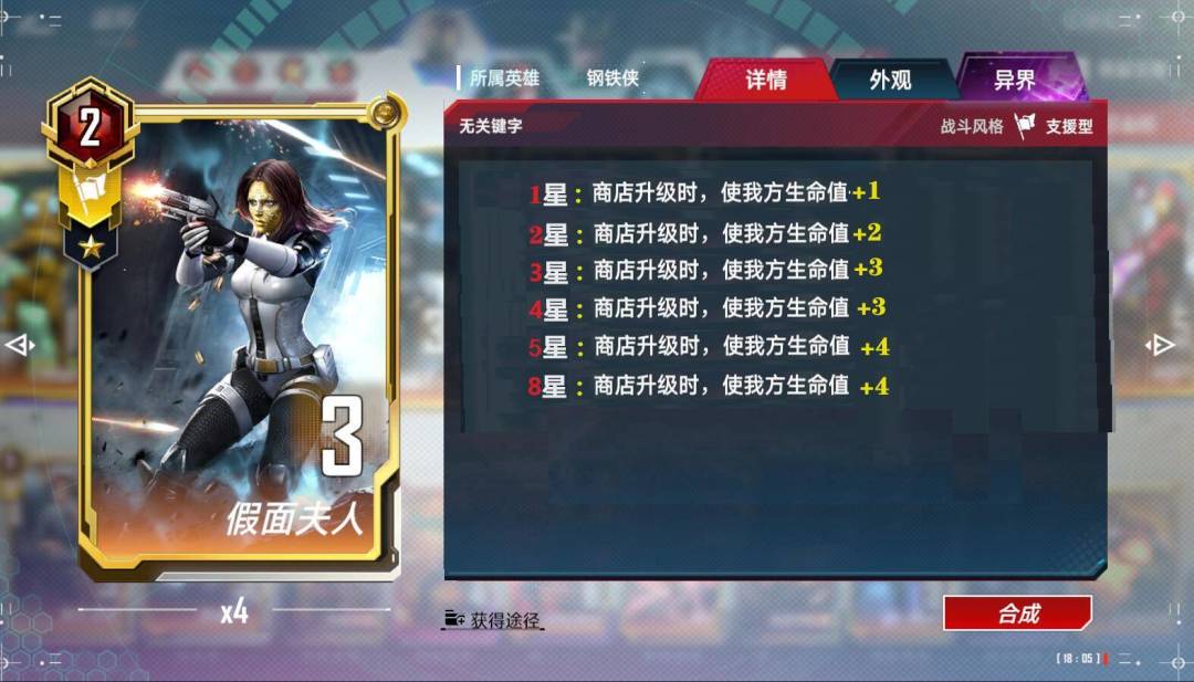 (1)、该技能回血的数量=场上钢铁侠单位回手后的手牌数量。所以理想状态下应该是场上有1-3个钢铁侠单位,给他们带上红武器,手牌10张满,使用技能后,场上钢铁侠和武器回手,最多可以回复13血。