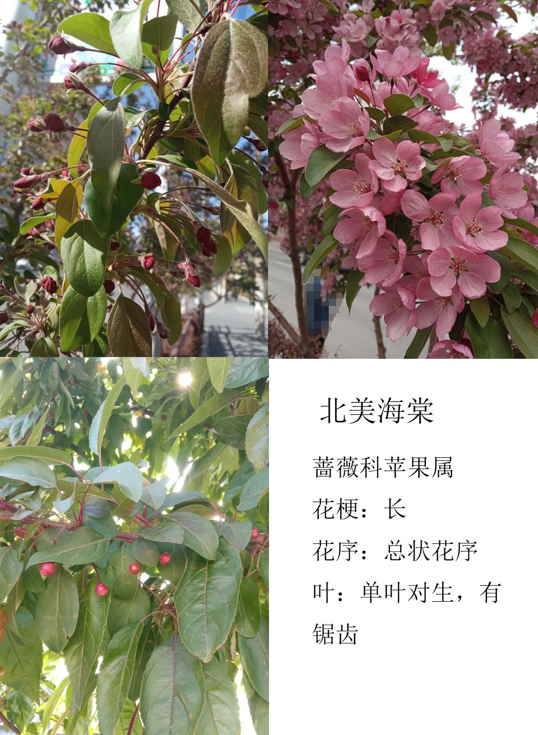 北美海棠:不知为何前期拍的两张照片怎么也看不出叶片有锯齿,为了求证在果期又去看了一眼,好吧,确实是有锯齿的……