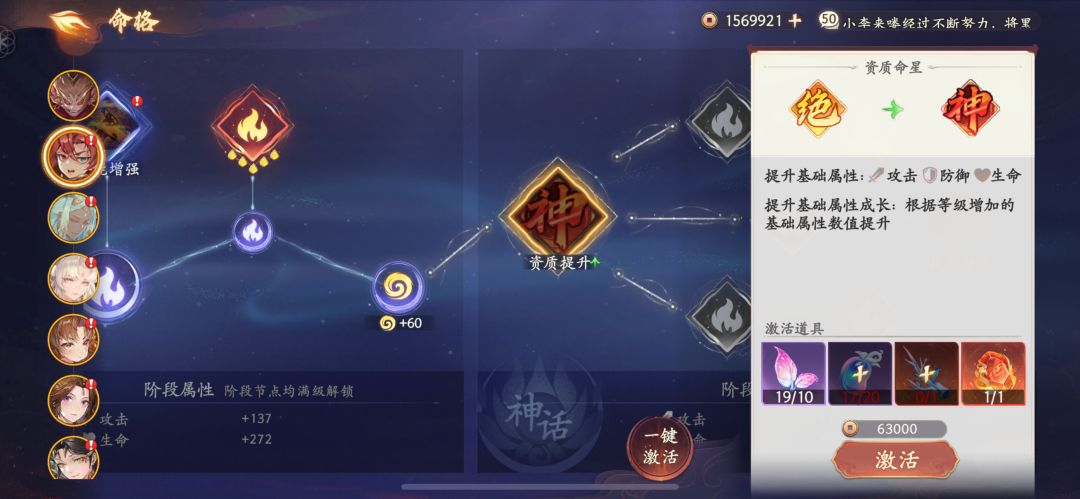 首先科普:一根神木灵枝等于一个神,68礼包送了五根就等于5个神了,再则通神石头一个2400玉商店买或者礼包氪,68特惠+128双周 直接升10神