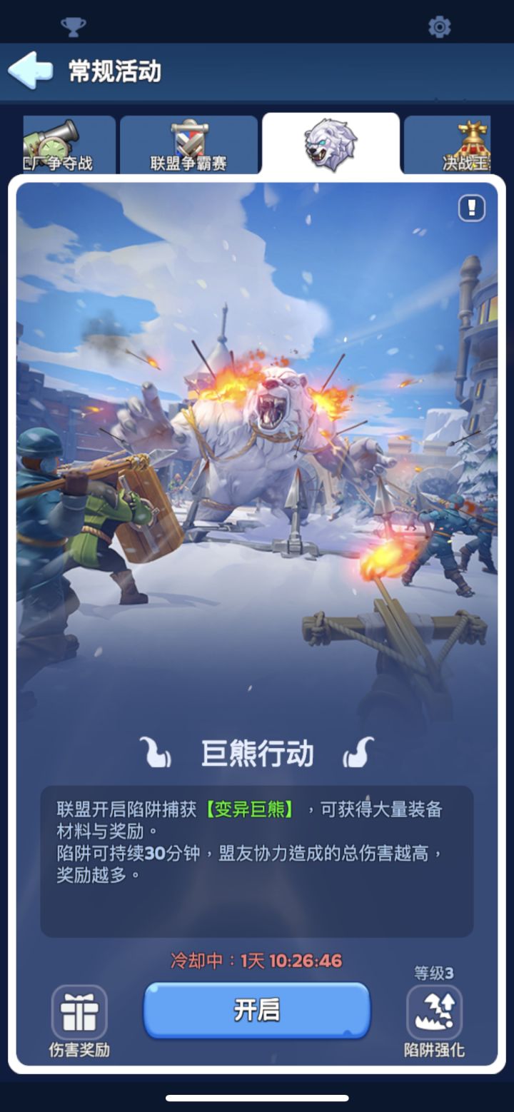 所在联盟建造狩猎陷阱后选择预约或手动开启,联盟可以投票决定活动时间。