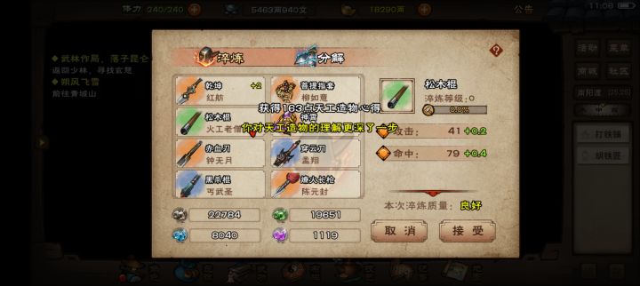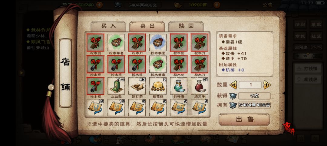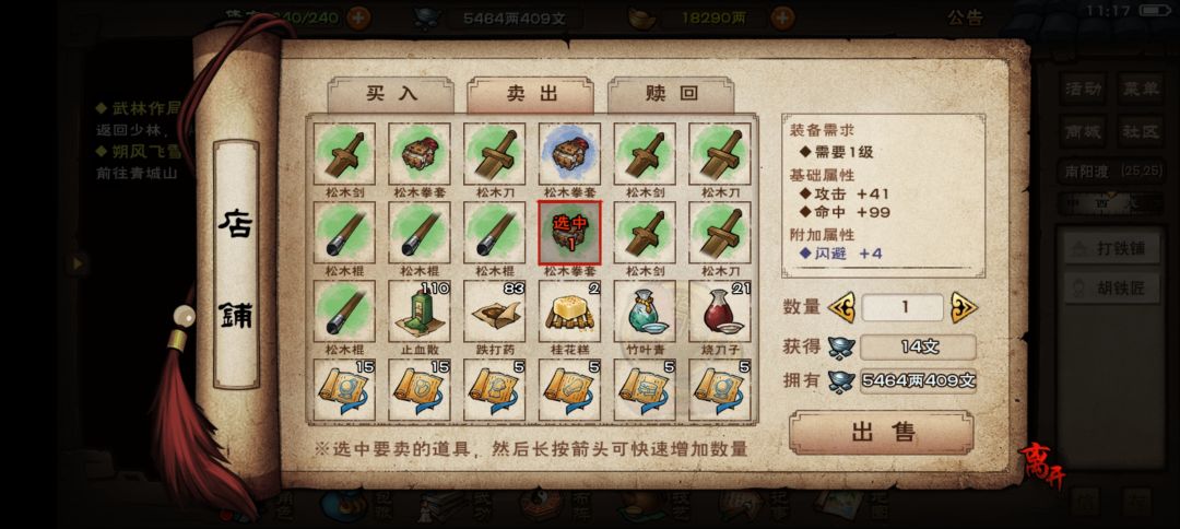 注意:木头装备不能分解,而且除了木头拳套可以卖钱,其他的木头装备都卖0文钱