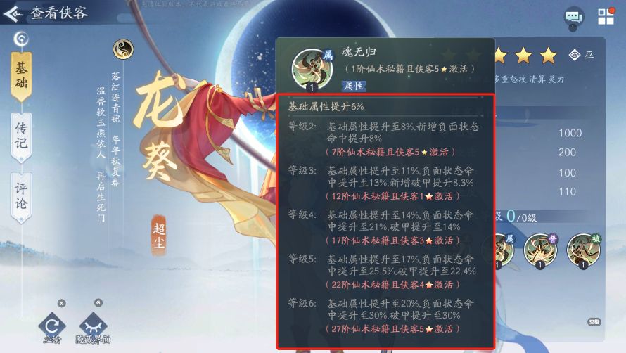 等级2:基础属性提升至8%新增负面状态命中提升8%