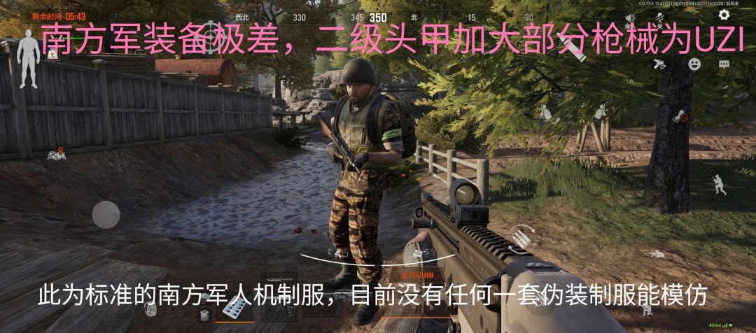 我们可以看到,这是一套全新的制服,目前没有任何一套伪装的模型和制服可以混进去,这就导致了现在打农场,伪装之间基本上第一眼就能认出来,想要伪装骗过同行,就要学会卡人机步伐,模仿人机的行进方式,这一点只能尽可能多的在实战中感悟。但是在S8剧情南方军基本占领农场的当下,农场100%只剩下这种口味的人机了吗?答案是否定的。