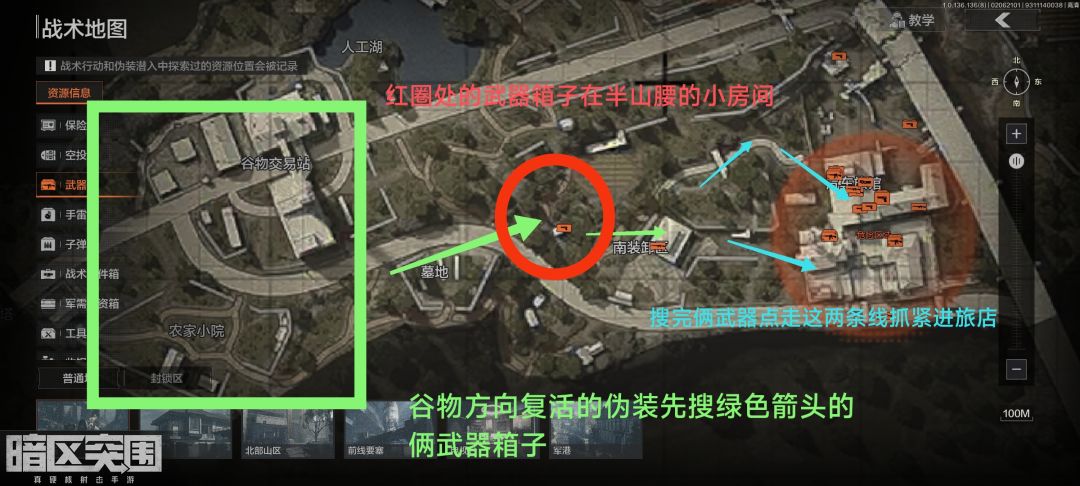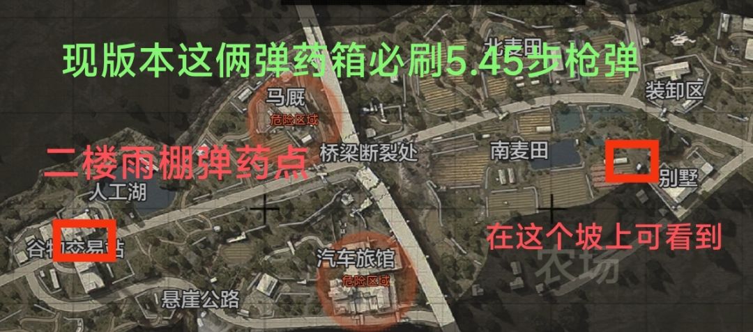 上述枪械各有优缺点,但是如果能在地图内摸到高级子弹,也是能用的。比如9mm的子弹特别容易摸到好的,达姆弹,ap6.3,基本就够用了。下面简单发一下路线和弹药,手雷补给区域