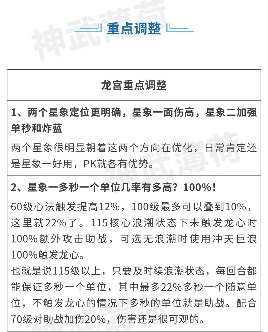 神武手游龙宫星象调整 | 星象一面伤最大化,星象二单体炸蓝加强