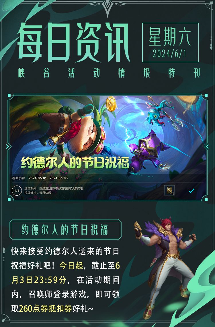 下面,隆哥还要和大家分享,六月第一天的正确打开方式,那就是——登录游戏前往峡谷日历签到,领取丰厚好礼!召唤师们快去开启属于你的六月福利之旅吧~
