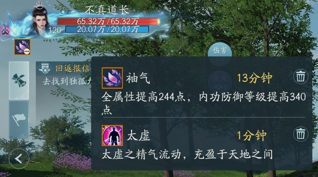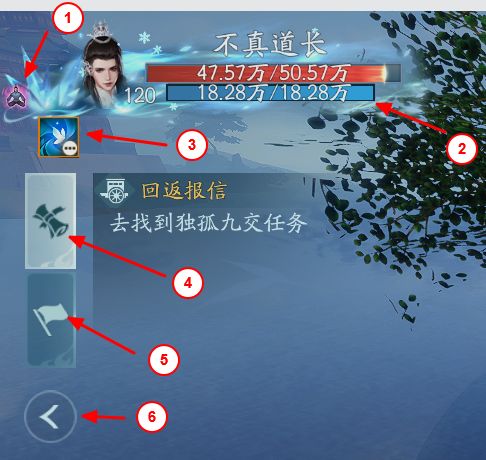 这里主要显示角色基本信息以及队伍和任务,不用的时候可以折叠起来保持界面的清爽。