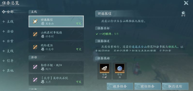 这里可查看你当前追踪的任务,点击卷轴图标可以进入任务列表。