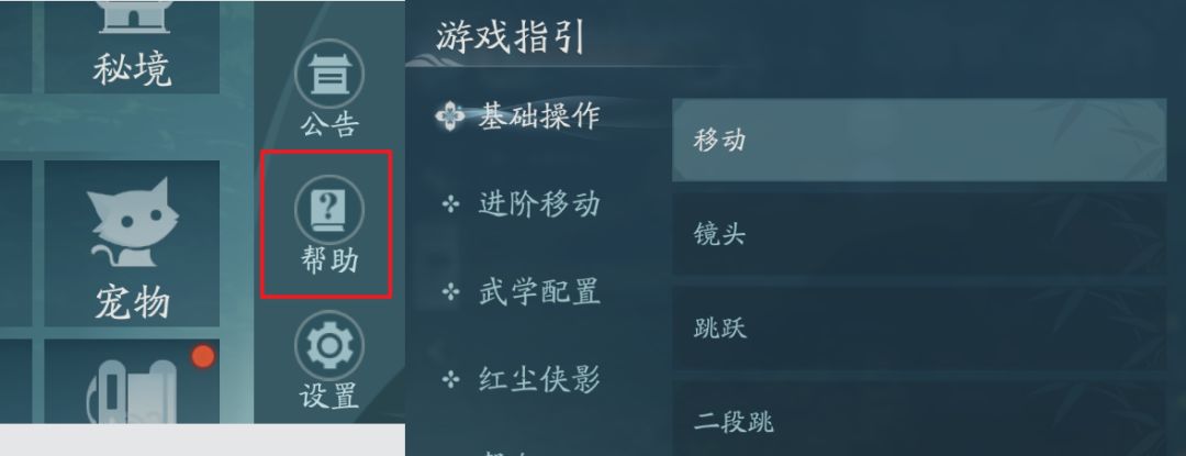 如果你刚刚接触游戏有一些基本内容不懂,可以点击”帮助“按钮进入游戏指引,查看游戏的基本教学。