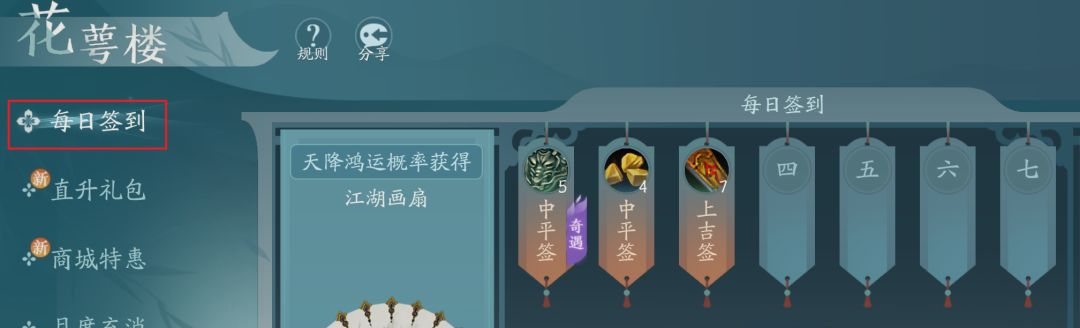 每七天一个循环,概率会获得特殊道具。