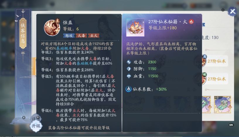 等级6:敌方携带业火时,每被附加1次火毒效果,业火的伤害系数提升15%,最多可提升75%