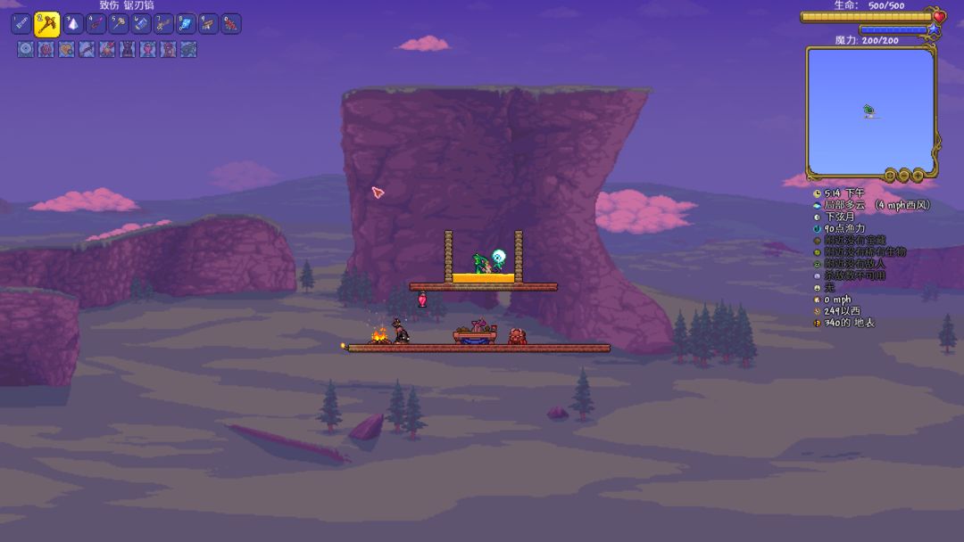 打法:摆上篝火,蜂蜜,心灯,韧皮雕像,喝下上述所有药水和食物,手持地狱烙印右键举起盾牌,放上五个弩车哨兵站立不动即可,中途在被月总的幻影死亡射线(头部的大激光)判定到伤害(被命中)时补血瓶,这样就可以静等月总死亡啦