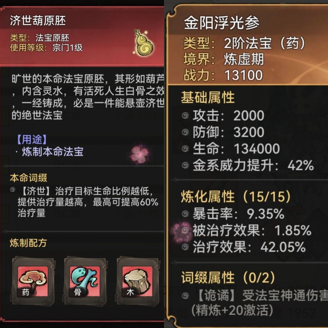 通过本命法宝济世葫的【济世】词缀对治疗量加成和法宝炼化属性的治疗效果加成,你就会感受到锁妖塔BOSS的快乐,对面打的没你回的多。