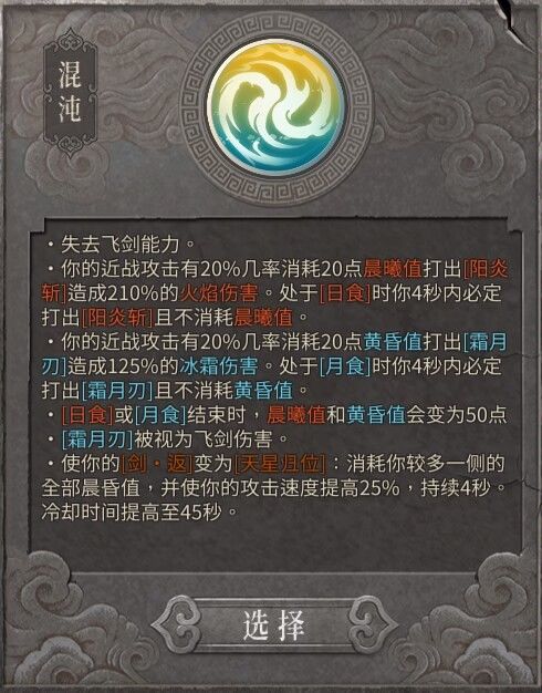 优先拿所有伤害>飞剑伤害>近战伤害(反之)>属性伤害