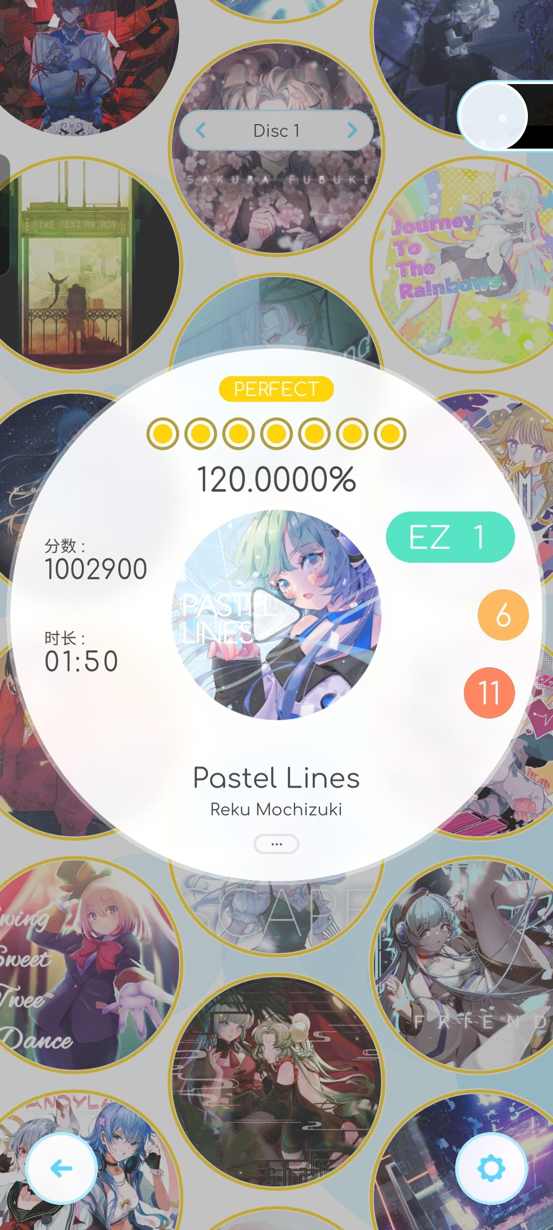 完成度:一首曲目最高完成度为120%,当完成度到达60%时,打歌界面左上角会出现一个圆点,完成度每增加10%就会出现一个(所以120%完成度会有7个圆点),若出现Miss或Bad判定,则会扣除相应完成度,结算时根据圆点数进行dot奖励(1圆点=3dot)