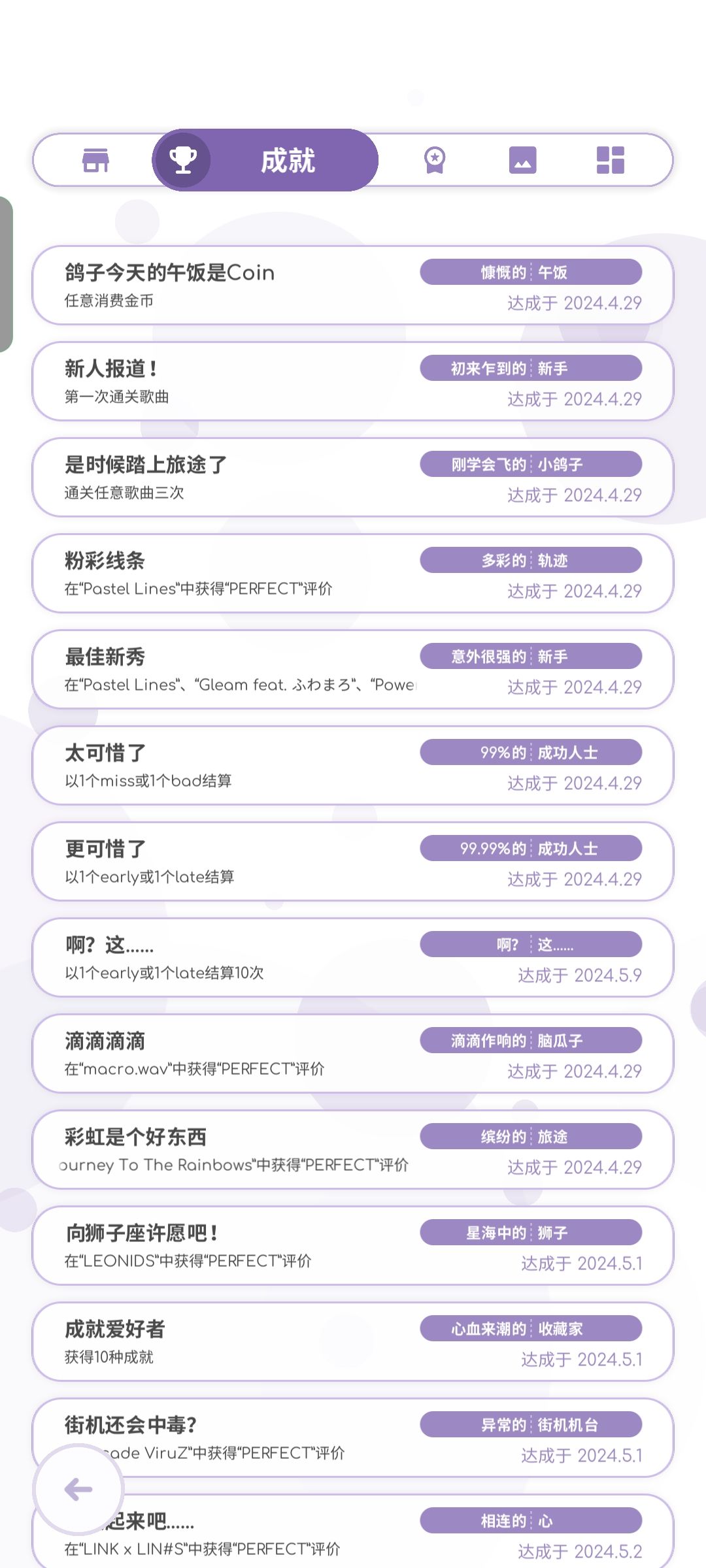 成就:在游玩过程中达成某些条件即可获得,并获得相应称号