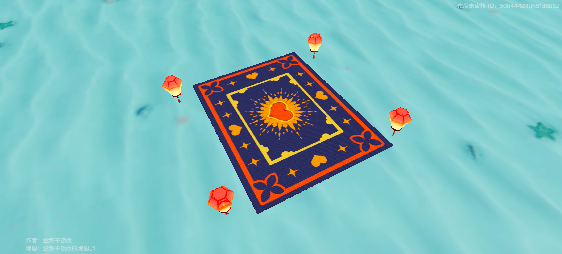精致的深蓝色飞毯上用金线织就心形纹样,四角上悬着的中国风红色小灯笼和飞毯的西化元素相对撞,为星宝们带来更新奇的观感~