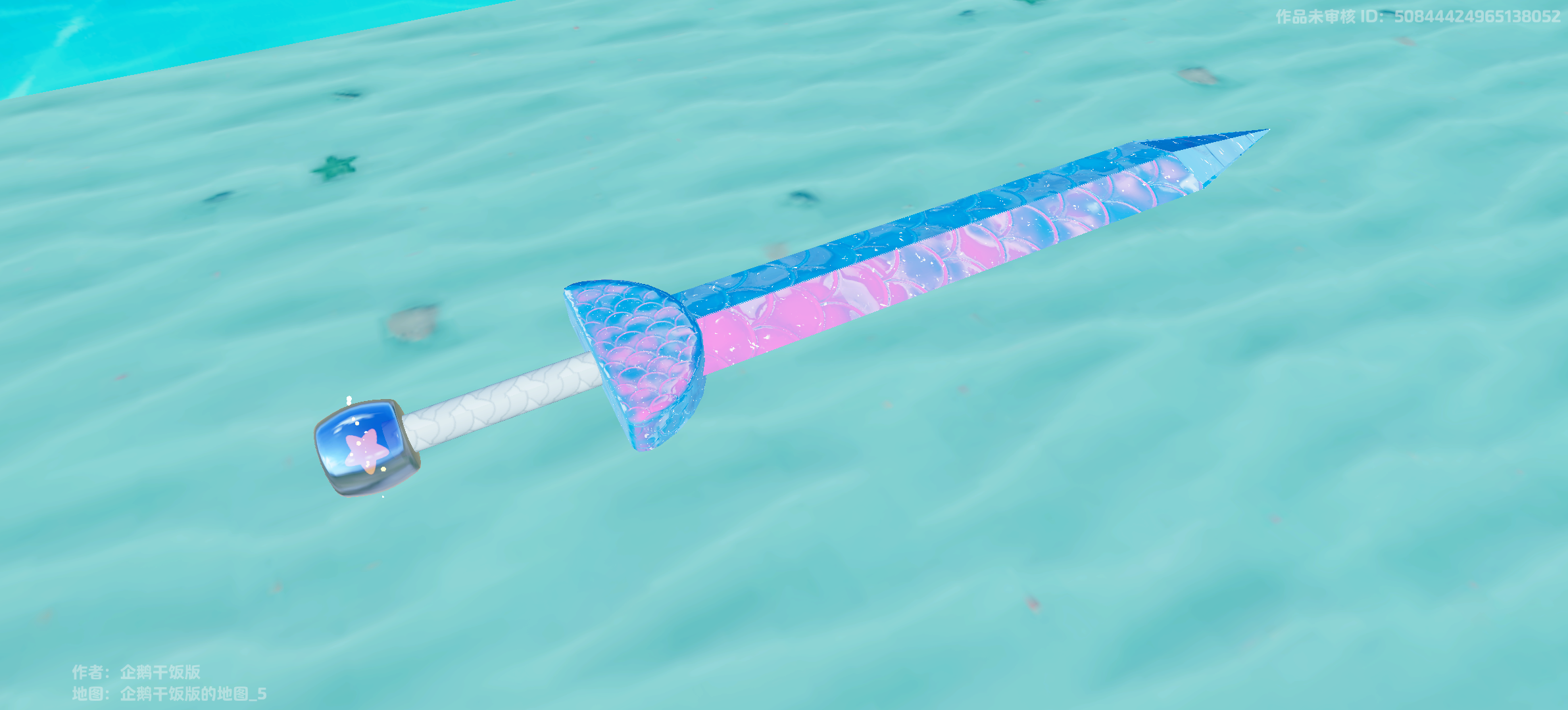 通体锃亮的宝剑安静地悬浮在空中,流淌着蓝粉色的光泽,折射出龙鳞式的纹样。剑尖锋利,剑身流畅,剑尾还挂着一颗小星星,当真是“优雅,永不过时~”