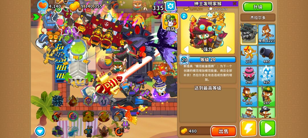 最近把另一个地图的极难模式刷了200多回合,突然想到之前的300多回合的存档,去看了眼,大概确认了一下在正常打无尽的情况下好用的猴子排名,还有一些细节。