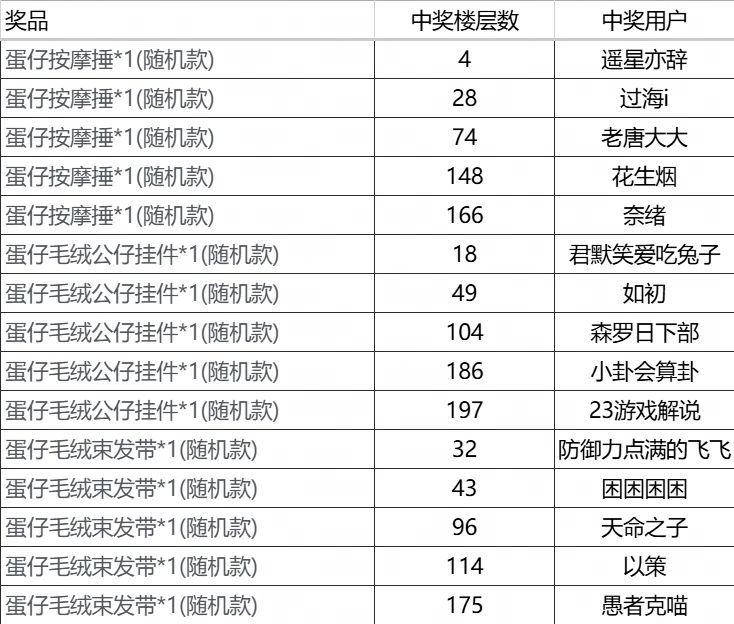随机抽取5人,每人获得蛋仔按摩捶*1(随机款)