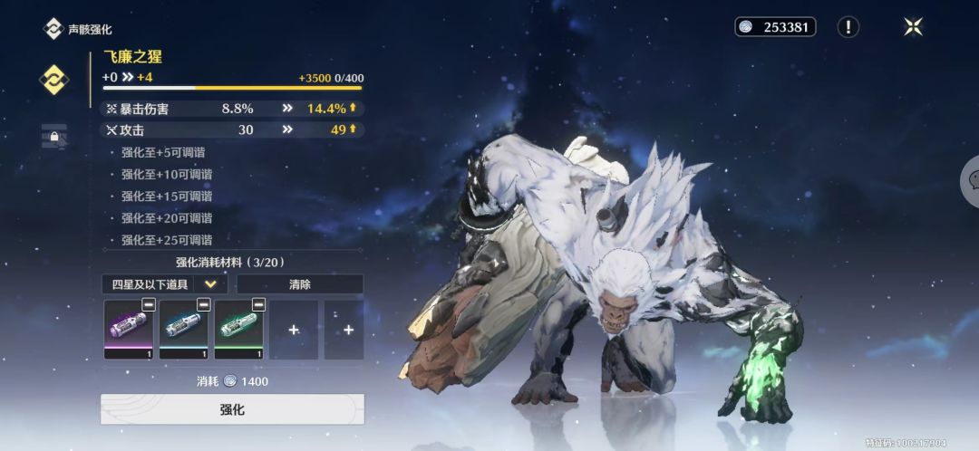 ②调谐器:调谐器真的让人很无语,获取渠道就这么多,很局限,调谐器还是一次性消耗品,体力刷的话60体力刷本附带十个调谐器,一个满级的金色声骸需要50个调谐器,后面玩家拉声骸直接商城购买吗,这氪度就没有上限了啊,就是600月相可换取150个调谐器,也就是说开三个金色声骸的词条,万一全是垃圾词条,直接寄了不是,这个问题就很大了啊,难道零氪党和微氮党只能选择放弃,我眼中怀疑调解器有提高氪度的嫌疑。而且你一个拉满的声骸,词条没拉好,喂给新的声骸调谐器还还你15个,咋是可怜玩家吗???损耗这么严重的吗?而且一个20级的声骸吸收另外一个20级的声骸,经验竟然只能够拉到24级出头一点点,这????经验损耗这么多吗????这怎么玩啊?