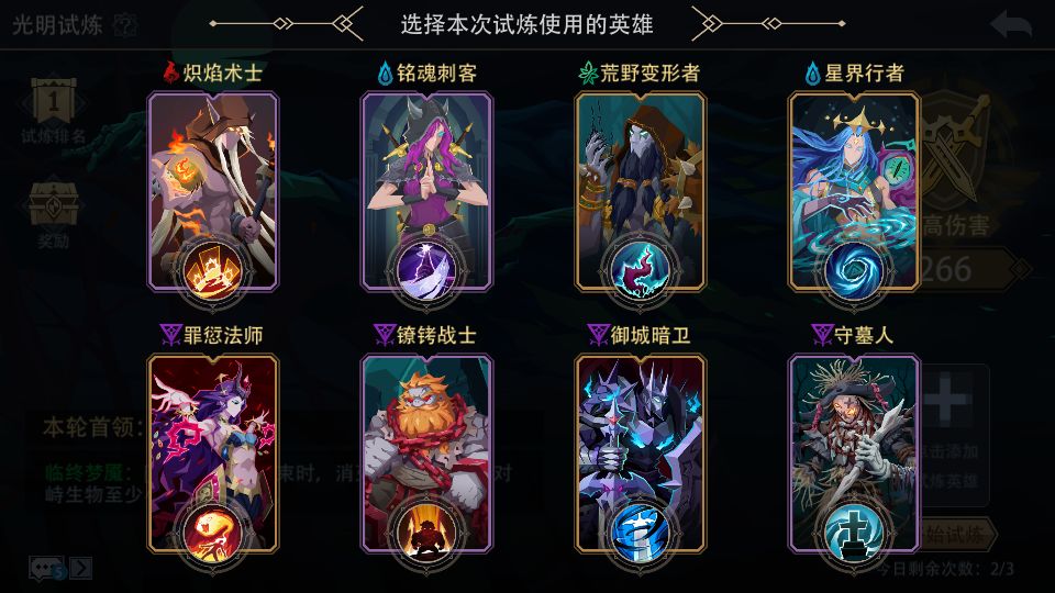 蘑菇补血流:(孢子+树妖+低语者+生命古树+治愈之风等)该常规打法一般可以拿满魔晶奖励,2000分伤害打满需要的条件较高。