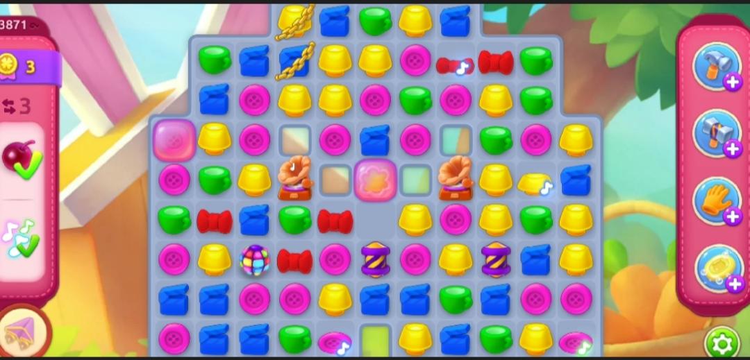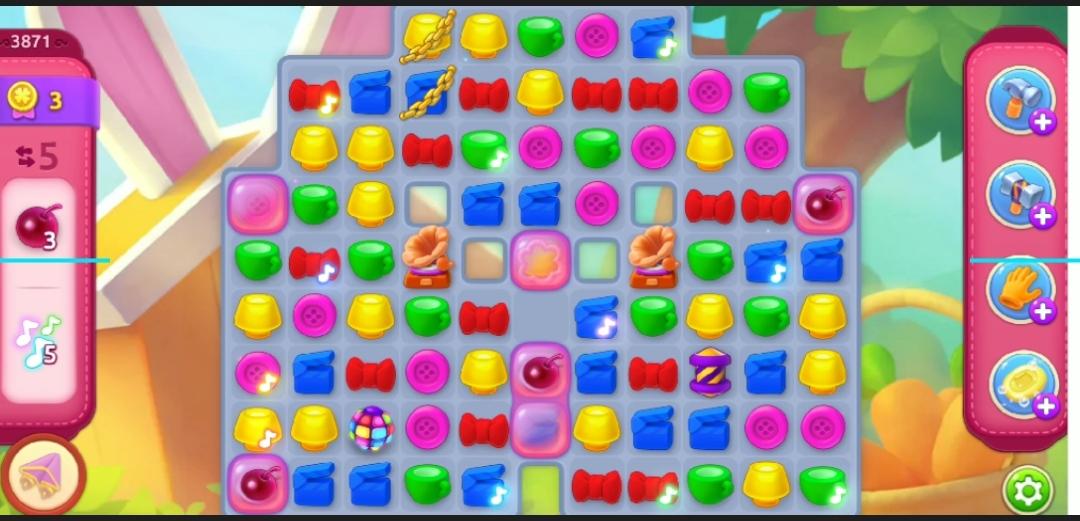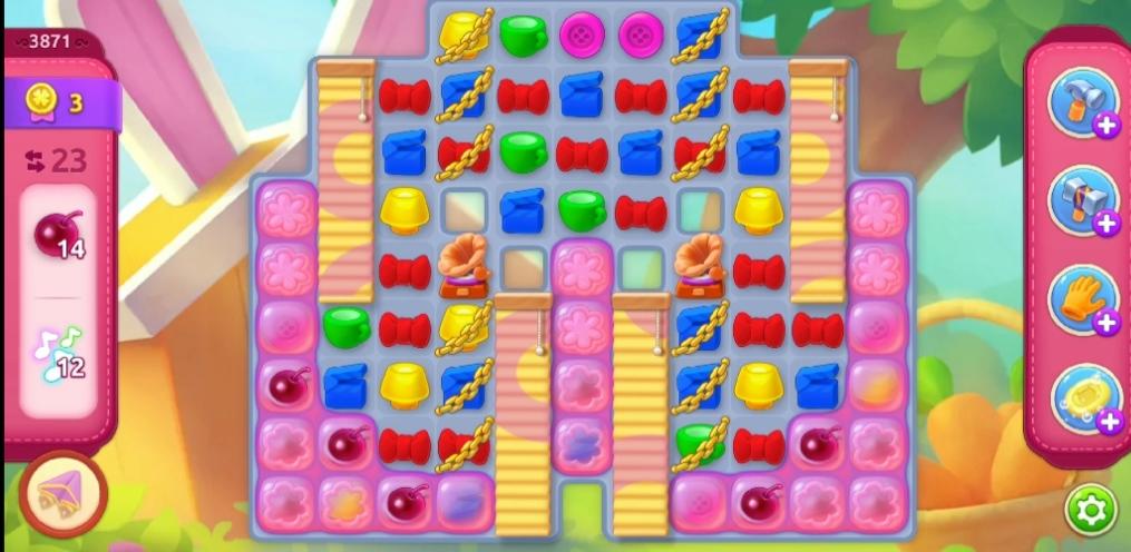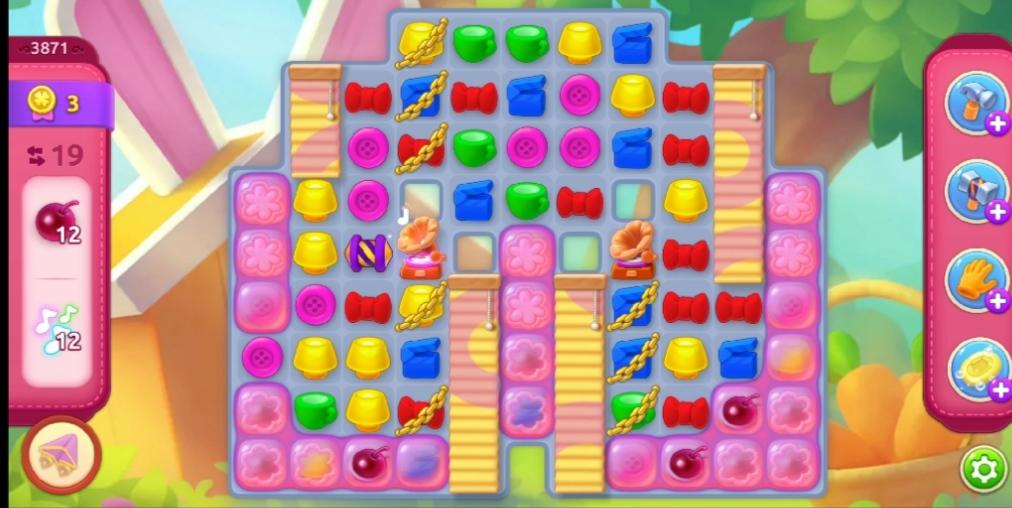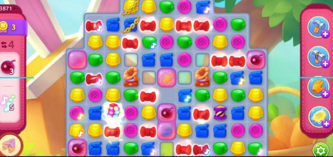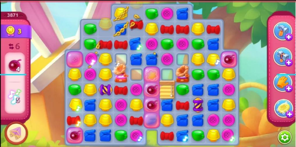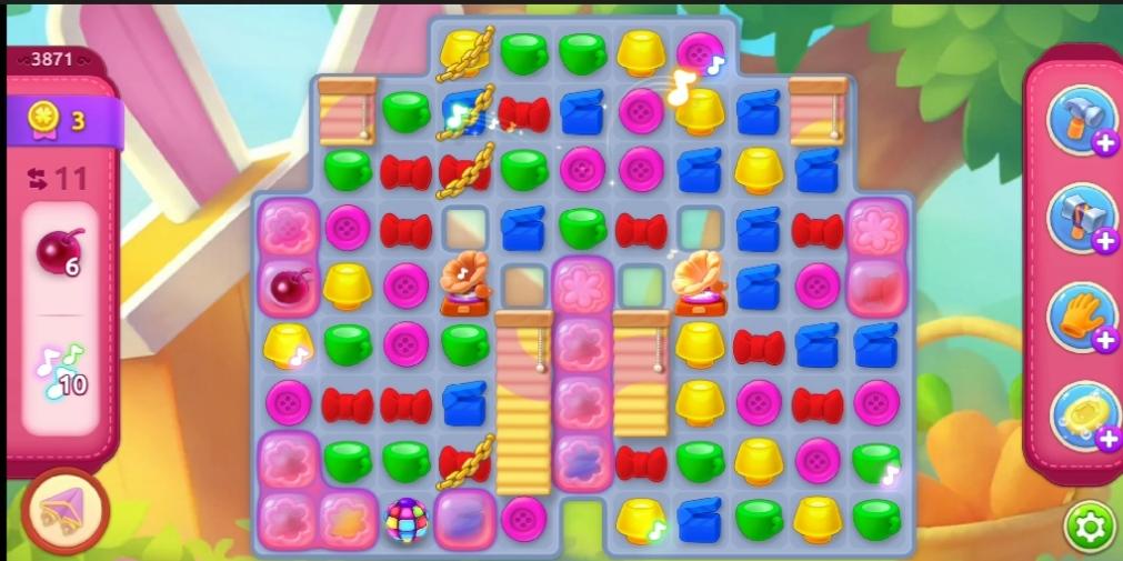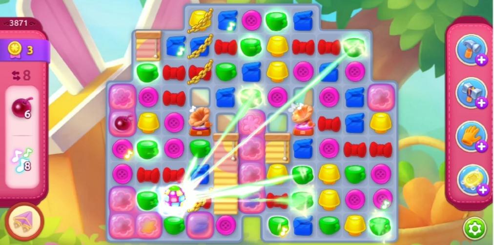 2.在留声机旁匹配3次就能产生音符🎶。在元素匹配,挪动或是掉落的过程中,同时也收集了着樱桃🍒和打开百叶窗。如果可以,还是要合成加速道具。