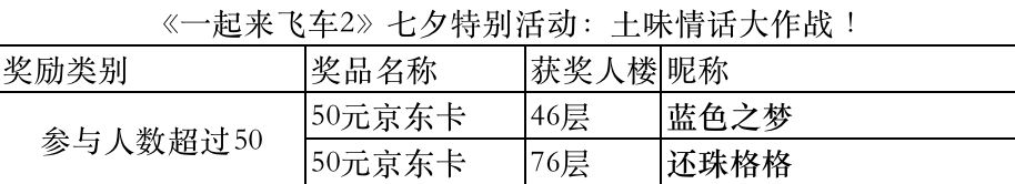 “《一起来飞车2》七夕特别活动:土味情话大作战!”活动获奖名单已出炉!