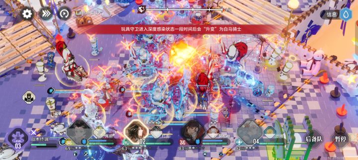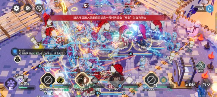 这才是联合训练第一关的高危驻守,已经被锤爆了,比推荐刻印等级高了那么多还是不行,咱就是说养老游戏整这么高难度啊,破盾来都来不及。也许从关卡特性来看需要能频繁推拉的同调者,问题是你游本来养成周期就很长,就为了一个活动强行培养工具人得不偿失啊。比之前的联合训练难度提升了不止一星半点。