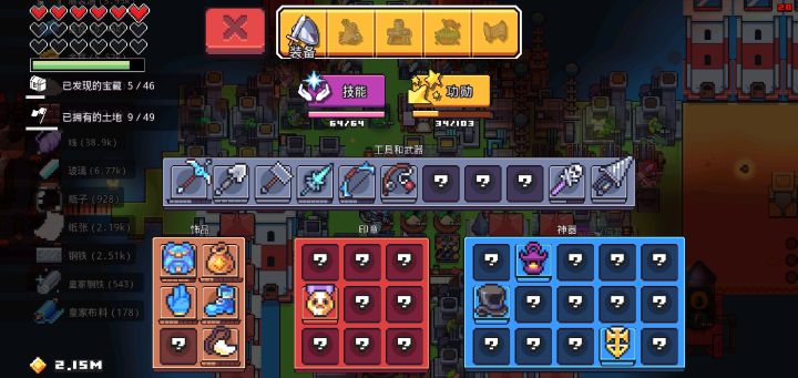 突发奇想,就试试看9个岛能不能把全装备做满级。(电脑不知道抽什么风截不了图,就把存档移到手机上截图)