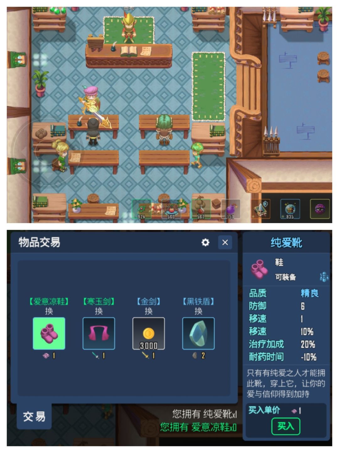 爱意凉鞋可以是刚开局的拦路兽人给他金币,他给你鞋子,也可以是爱心史莱姆掉落(可以去地牢3刷)