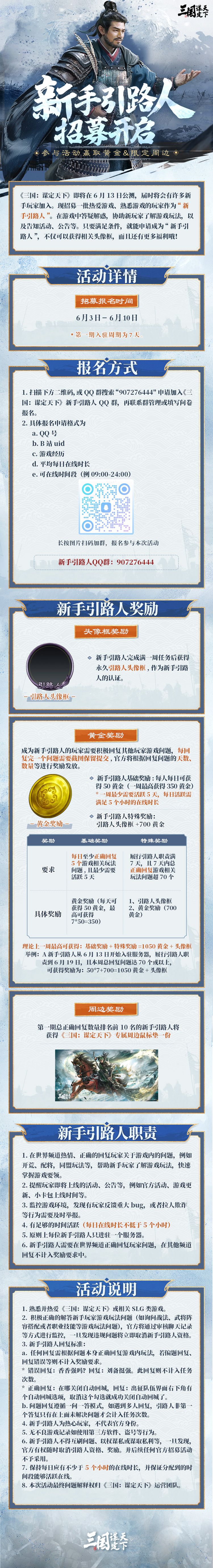 只要你热爱和熟悉《三国:谋定天下》,愿意为新手答疑解惑,帮助#新手了解游戏玩法,带领首次进入三谋世界的玩家一步步踏上征程,均可报名成为“新手引路人”!