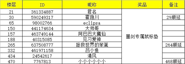 锵锵!预约里程碑达成活动开奖啦!除了系统抽取的几位少侠外,为了感谢大家的捧场,以及当初对周边提出的建议,这边还随机抽取了10位幸运鹅,赠送我们新鲜出炉的鼠标垫周边一份~具体名单详见下方(鉴于部分楼层被系统吞掉,以及需要符合活动资格的原因,实际获奖楼层和随机生成的会存在顺延关系