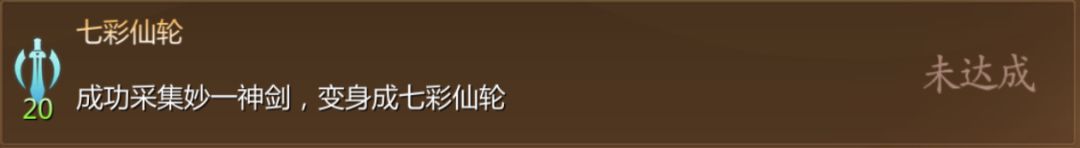 达成条件:成功采集妙一神剑,变身成“七彩仙轮”即可达成成就