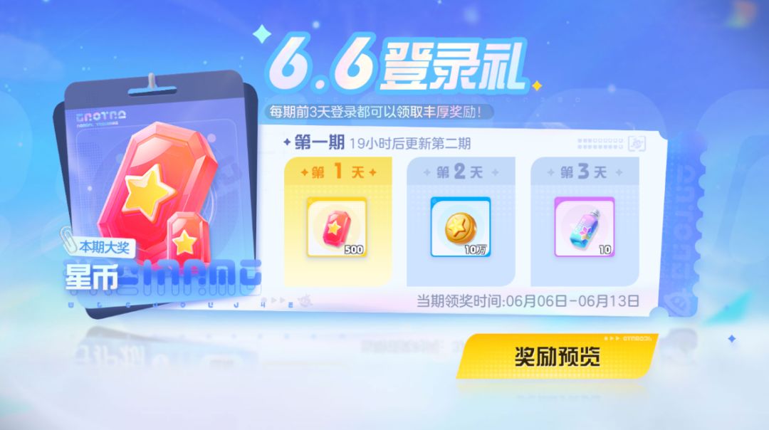 6.6登录礼开启,每期前3天登录,领取丰厚奖励!